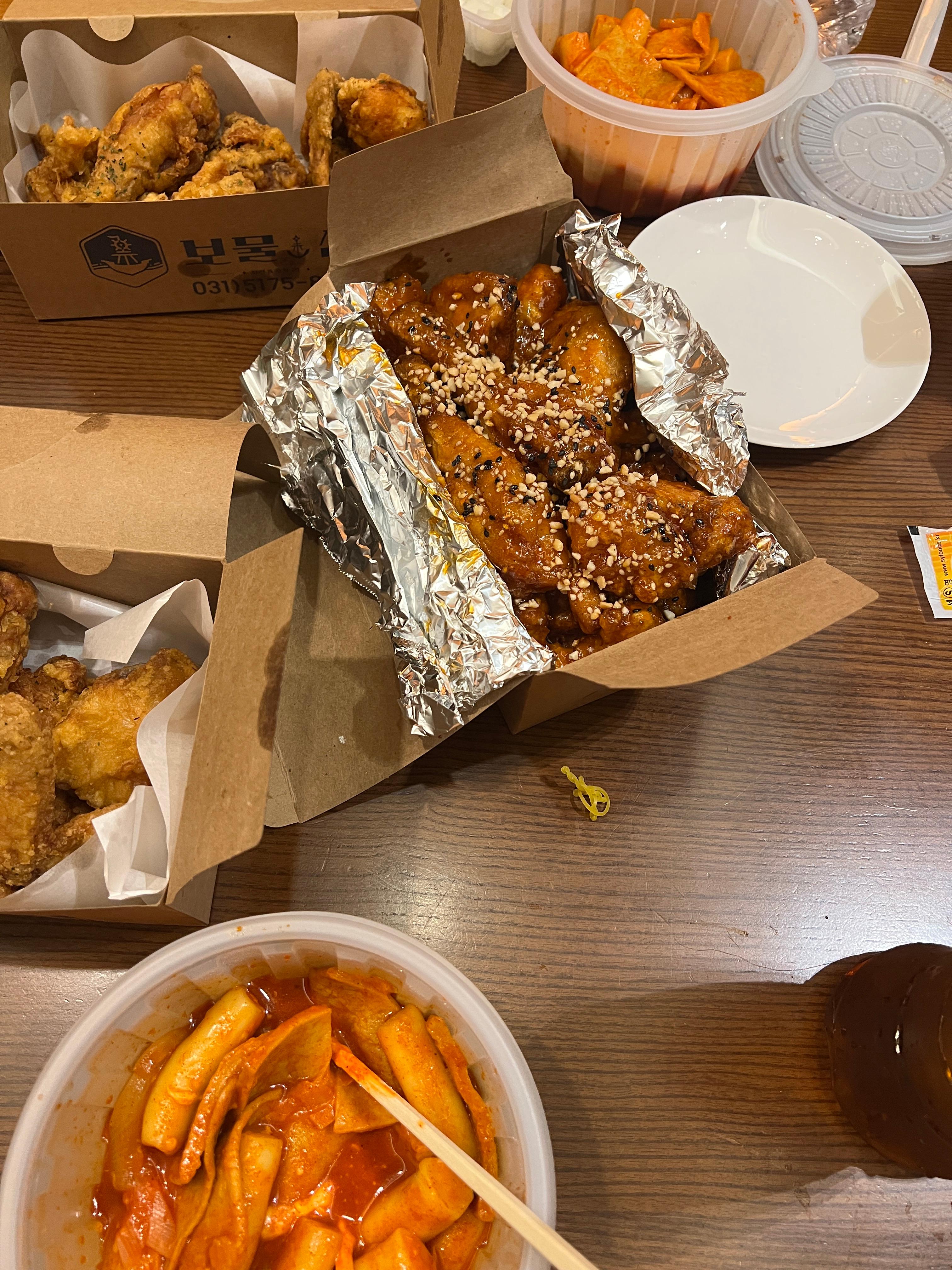 제가 주문한 건 양념치킨, 후라이드치킨, 그리고 떡볶이였어요.