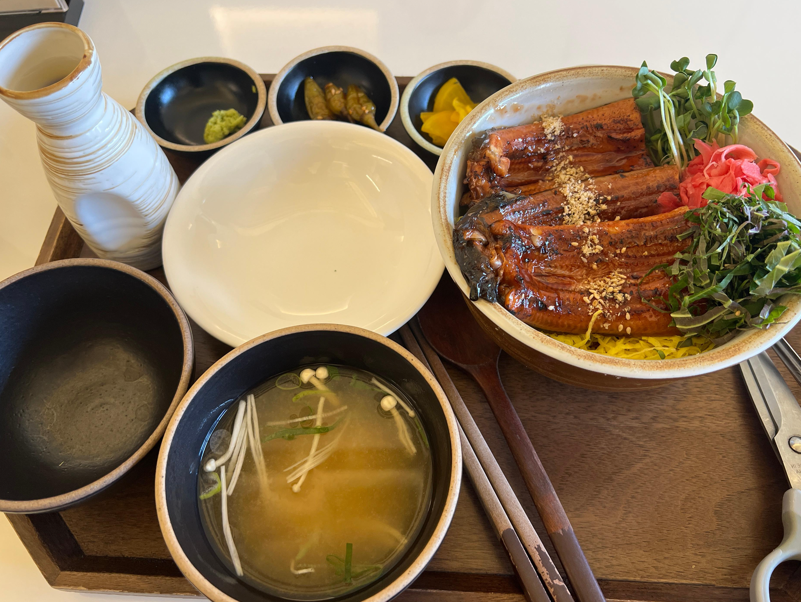 고급스러운 장어가 듬뿍 올라간 덮밥으로, 숯불에 구운 듯한 은은한 불향과 달달하고 짭조름한 타레소스(일본식 간장 소스)가 아주 잘 어우러졌어요. 장어 특유의 비린맛 없이 촉촉하게 잘 익혀져 있었고, 밥도 너무 질거나 마르지 않아 딱 적당했어요. 고명으로 올라간 채소들과 함께 먹으니 식감도 훌륭하고 건강한 느낌까지! 비싼 가격이지만 그만한 가치가 있는 한 끼였습니다.