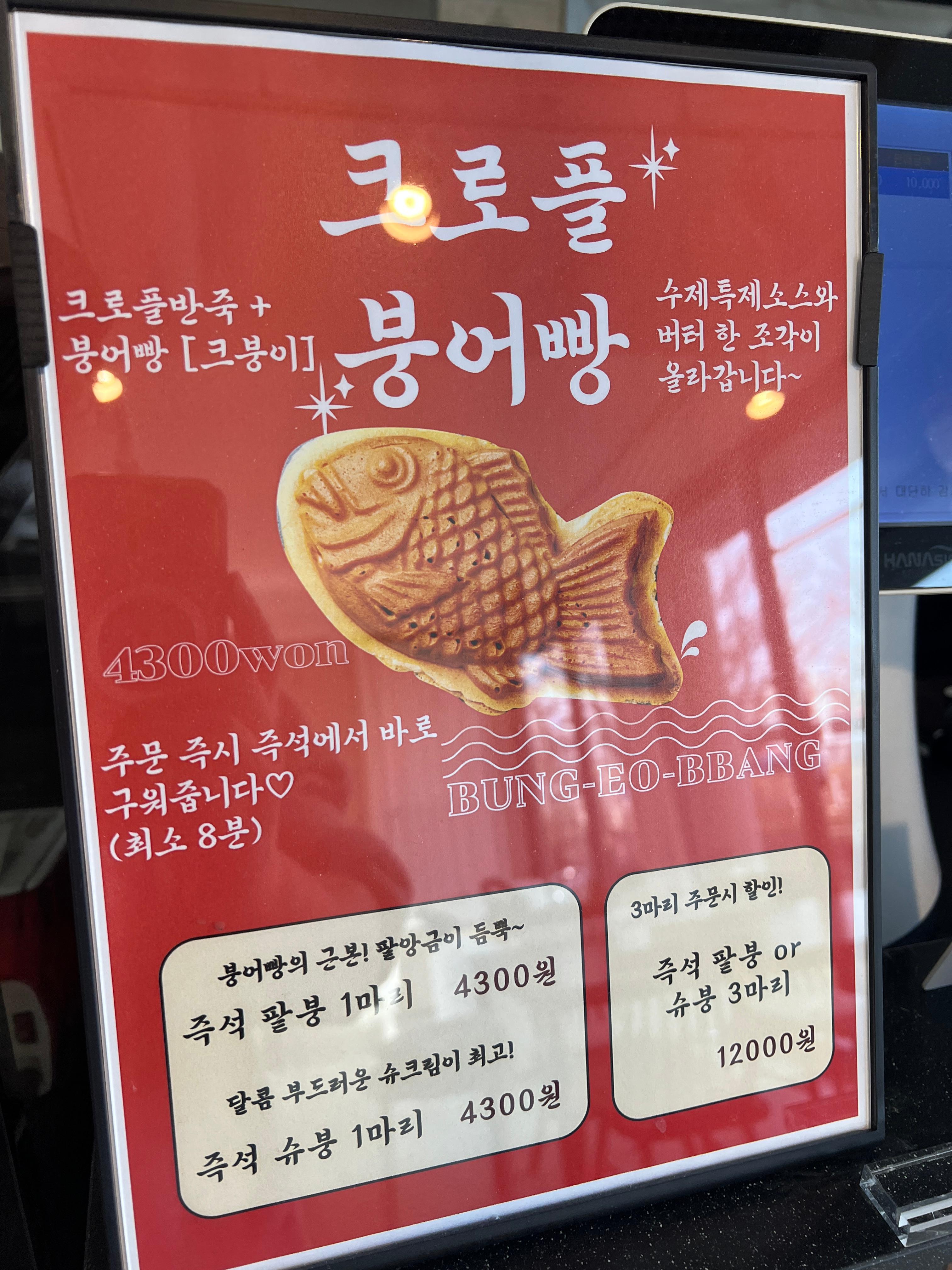 그리고 **붕어빵과 크로플이 합쳐진 ‘크붕이’(크로플 붕어빵)**는 귀엽고 맛있어 보여서 다음엔 꼭 먹어보고 싶다.