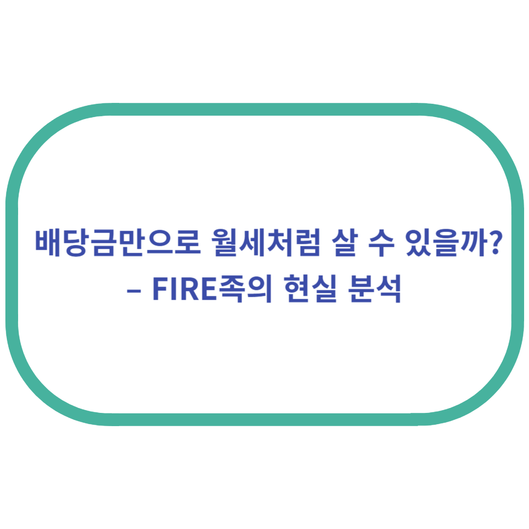 오늘은 많은 투자자들이 한 번쯤 꿈꾸는 ‘배당금만으로 생활하는 삶’, 즉 FIRE(Financial Independence, Retire Early)의 현실에 대해 이야기해보려 합니다.