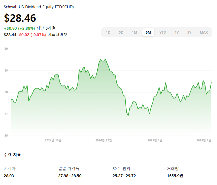 2. SCHD 주가: 28.46달러 (약 37,000원)