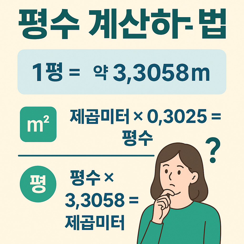 - 1평 = 약 3.3058㎡ (제곱미터)