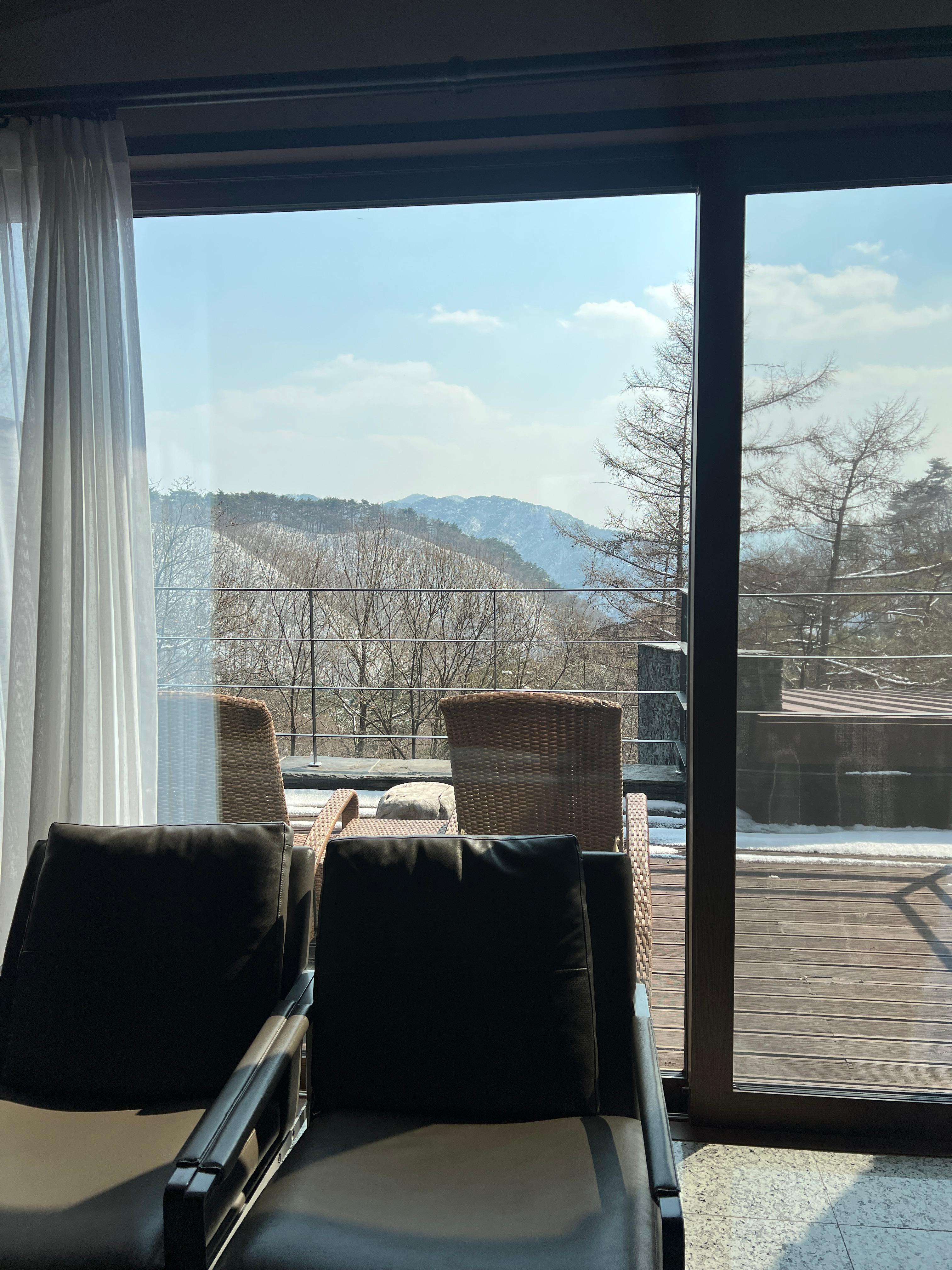 - 거실 창 너머로는 눈 쌓인 숲과 산이 한눈에 들어와 탁 트인 뷰와 햇살 가득한 풍경이 정말 힐링이었습니다.