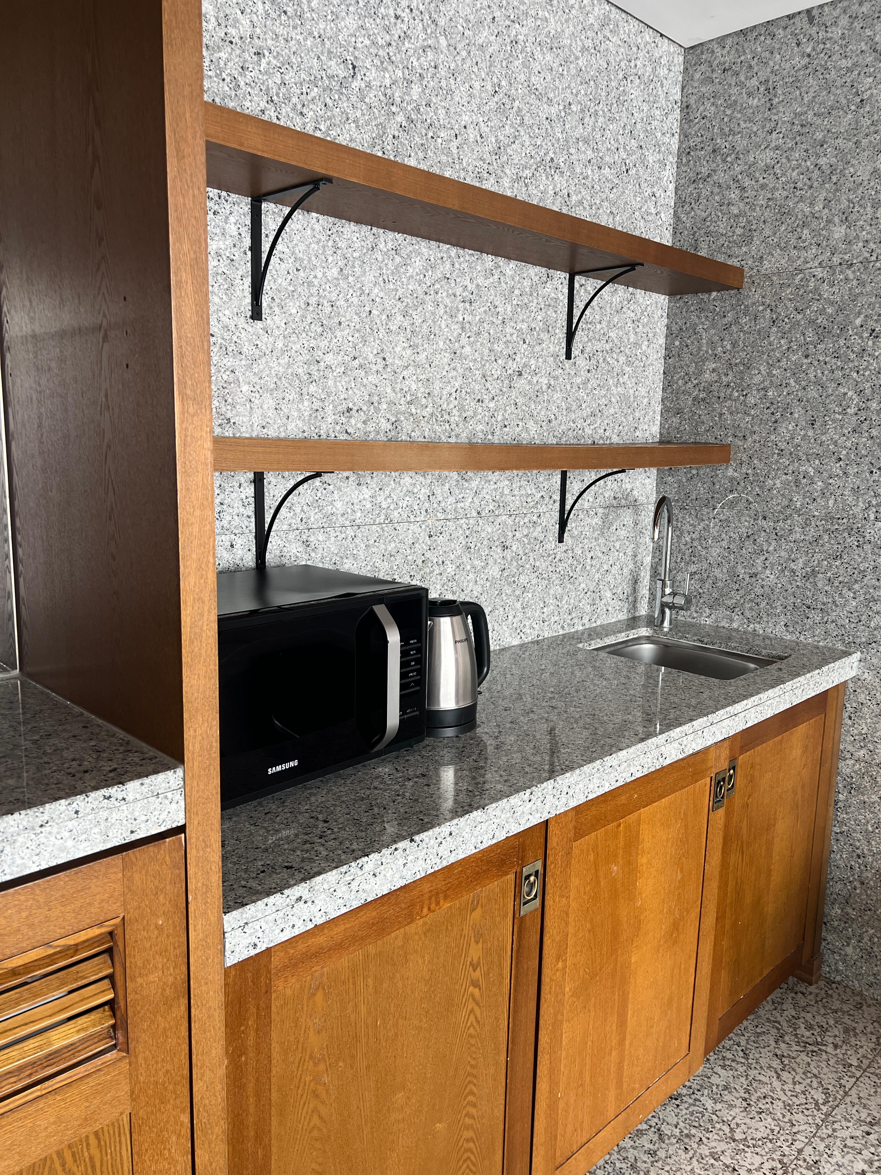 - 넓고 깔끔한 주방에는 전자레인지, 전기포트가 구비되어 있어 이유식이나 분유 준비에 매우 편리했습니다.