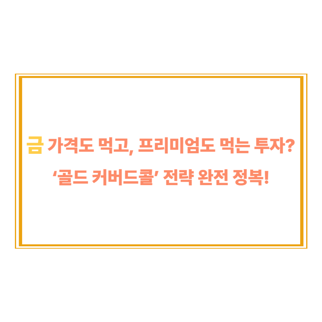 단순한 금 보유보다 “골드 커버드콜”로 전략적 수익을 추구하는 방법도 고민해볼 만합니다.