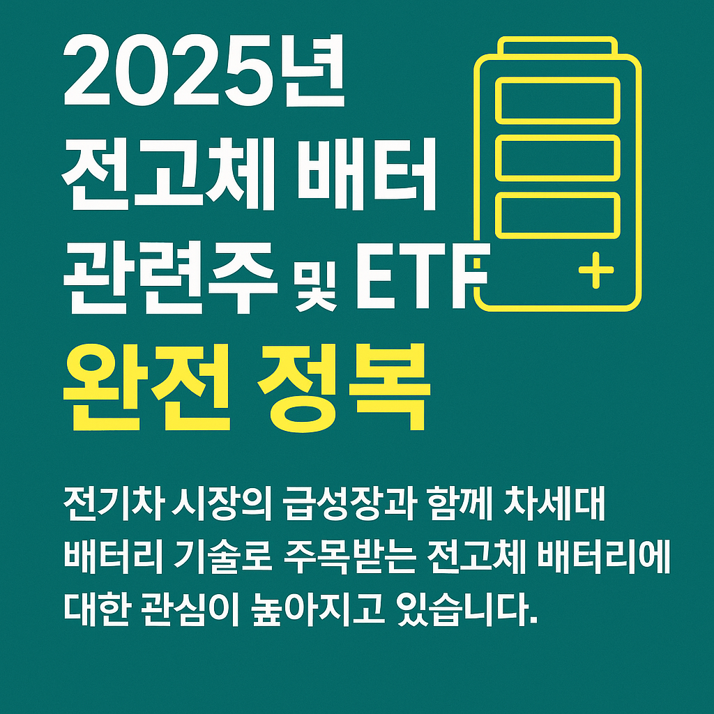 전기차 시장의 급성장과 함께 차세대 배터리 기술로 주목받는 전고체 배터리에 대한 관심이 높아지고 있습니다. 2025년 현재, 전고체 배터리는 기존 리튬이온 배터리의 한계를 극복할 수 있는 기술로 평가받으며, 관련 기업들의 주가와 ETF 수익률에도 큰 영향을 미치고 있습니다.