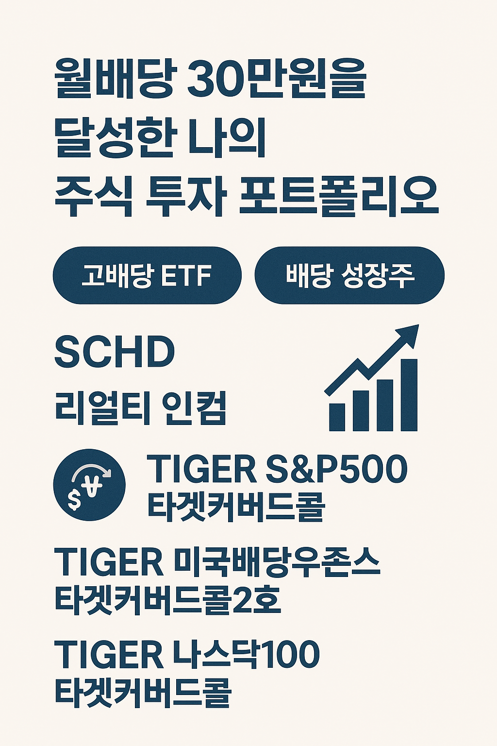 매달 현금 흐름을 즐기면서도, 장기적으로는 성장성까지 챙길 수 있는 균형 포트폴리오가 목표예요.