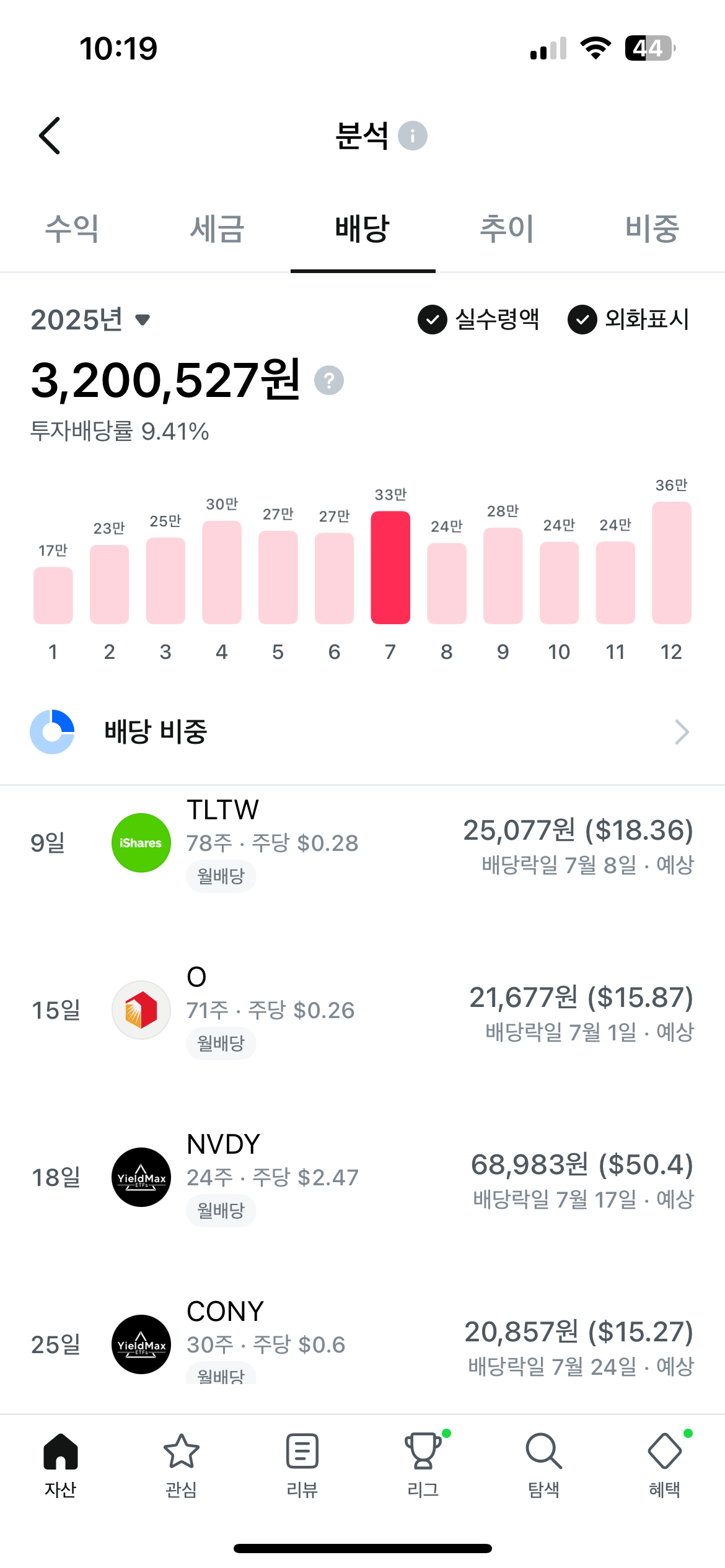 즉, 단순 계산으로 연간 약 320만 원 / 12개월 ≈ 월 26~30만 원 수준의 월배당 흐름을 만들어냈다는 거죠.