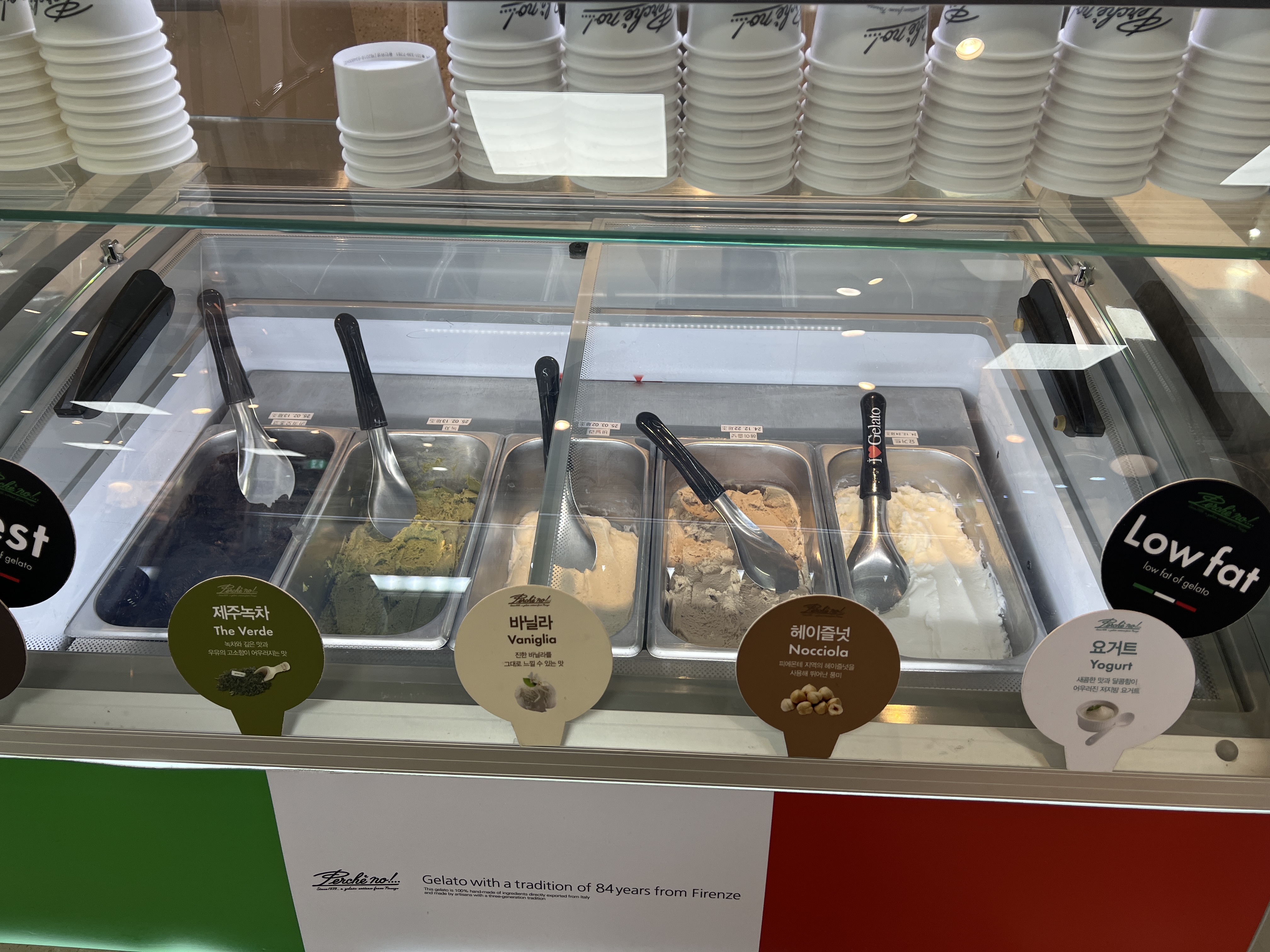 이곳이 독특했던 점은 젤라또 아이스크림 종류가 굉장히 다양했다는 거예요. 페르케노라는 이탈리아 정통 젤라또 브랜드의 아이스크림을 판매하고 있었고,