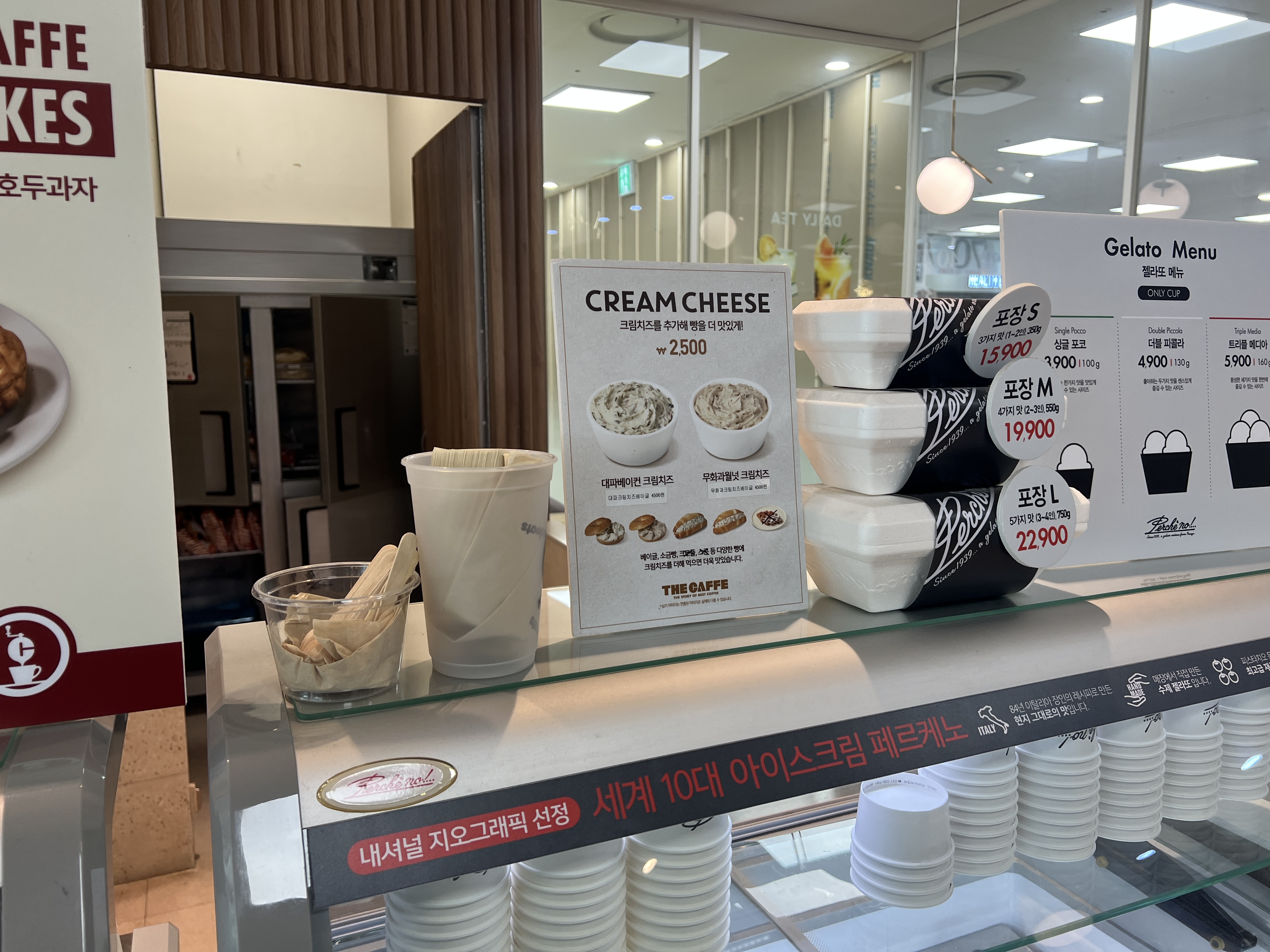 이곳이 독특했던 점은 젤라또 아이스크림 종류가 굉장히 다양했다는 거예요. 페르케노라는 이탈리아 정통 젤라또 브랜드의 아이스크림을 판매하고 있었고,